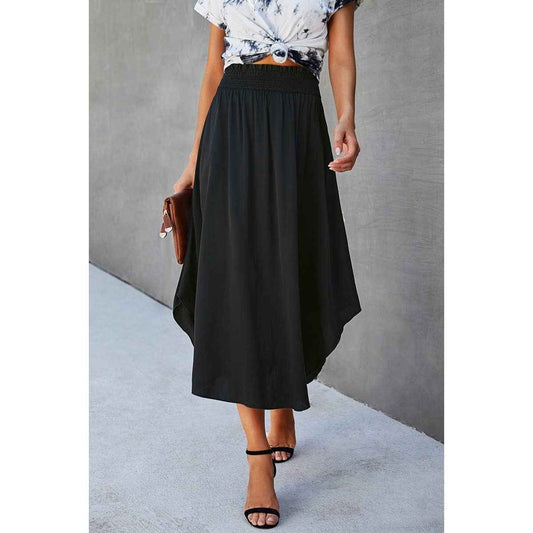Solid Ruffled Midi Skirt