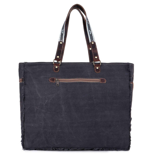 Canvas & Leather Weekender Bag - Black/White