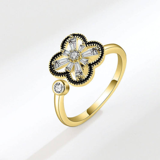 Four Leaf Clover Fidget Spinner Ring in 925 Sterling Silver