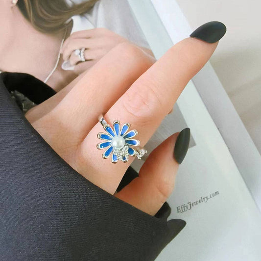Daisy Flower Anxiety Fidget Spinner Ring in Solid Copper