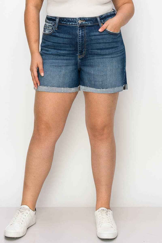 PLUS SIZE - HIGH RISE STRETCH MIDI CUFF SHORT