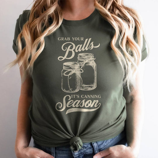 Canning Season T-Shirt - 'Grab Your Balls' Graphic