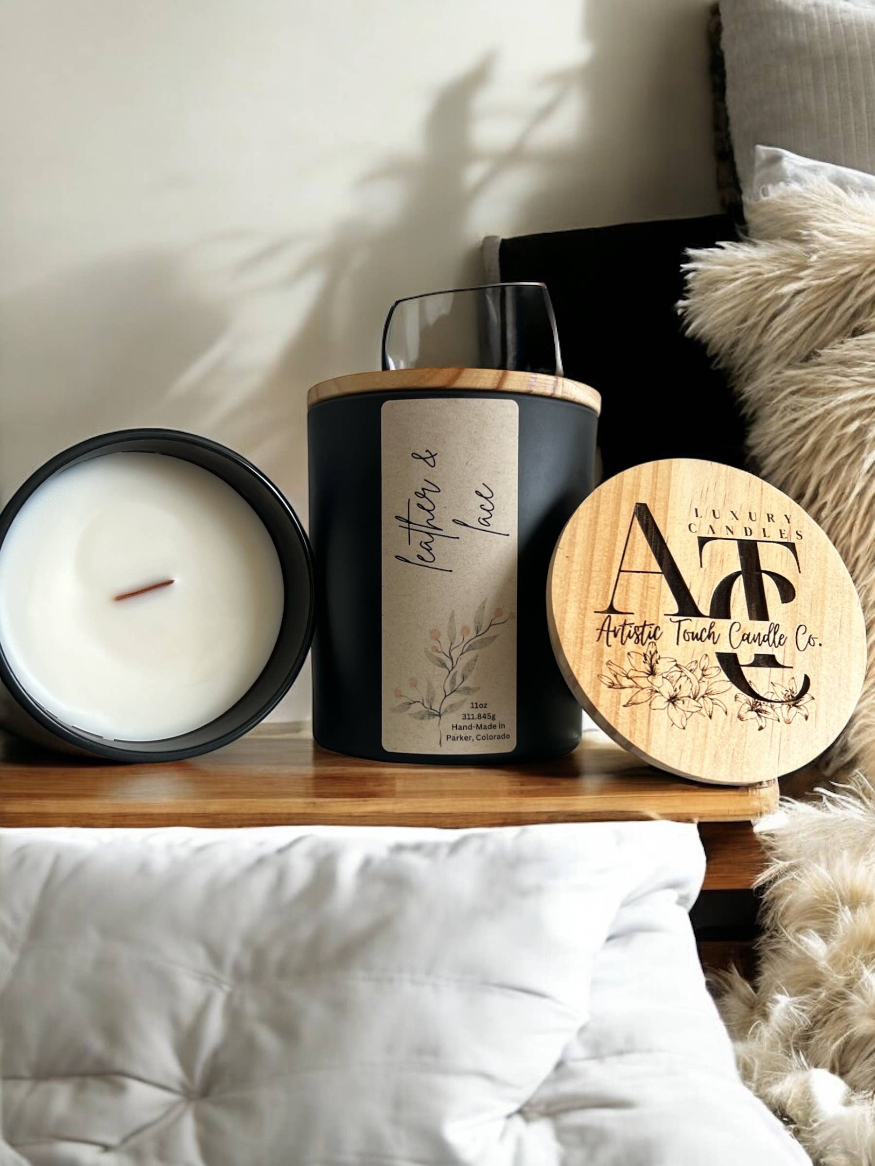 This candle is truly AMAZING! All year-round fragrance. Top Notes: Bergamot, almond, tonka Middle Notes: Leather, white floral, amber Bottom Notes: Musk, vanilla, blonde woods Our candles are handmade in small batches with a custom soy wax blend with a crackling cedar wood wick. Our candles are made with phthalate free fragrance oils for a clean burn. Approx burn time is 60-80 hours.