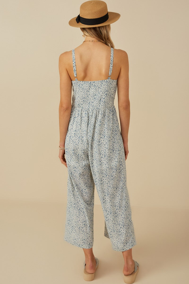 Step into sunny days with this playful Blue Floral Jumpsuit. Crafted from lightweight fabric, it keeps you cool and comfortable all summer long. The vibrant blue floral pattern adds a fresh, fun vibe perfect for any casual outing or weekend adventure. Easy to wear and effortlessly stylish, this jumpsuit is your go-to for warm-weather fun.