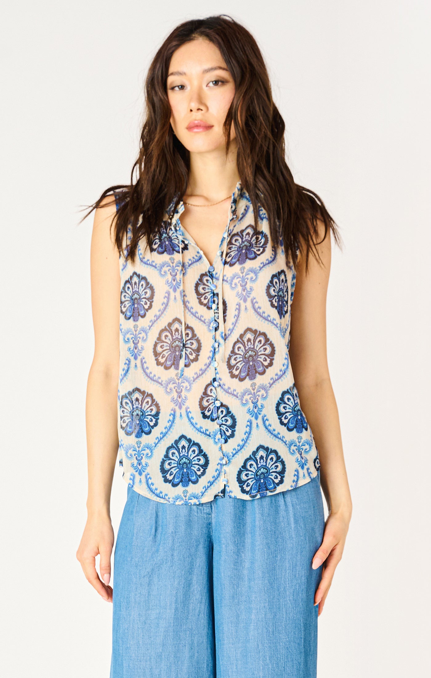 Get noticed in our playful Blue Medallion Blouse! The bold blue color will make you stand out from the crowd and radiate confidence. Perfect for making a statement at work or a night out with friends.