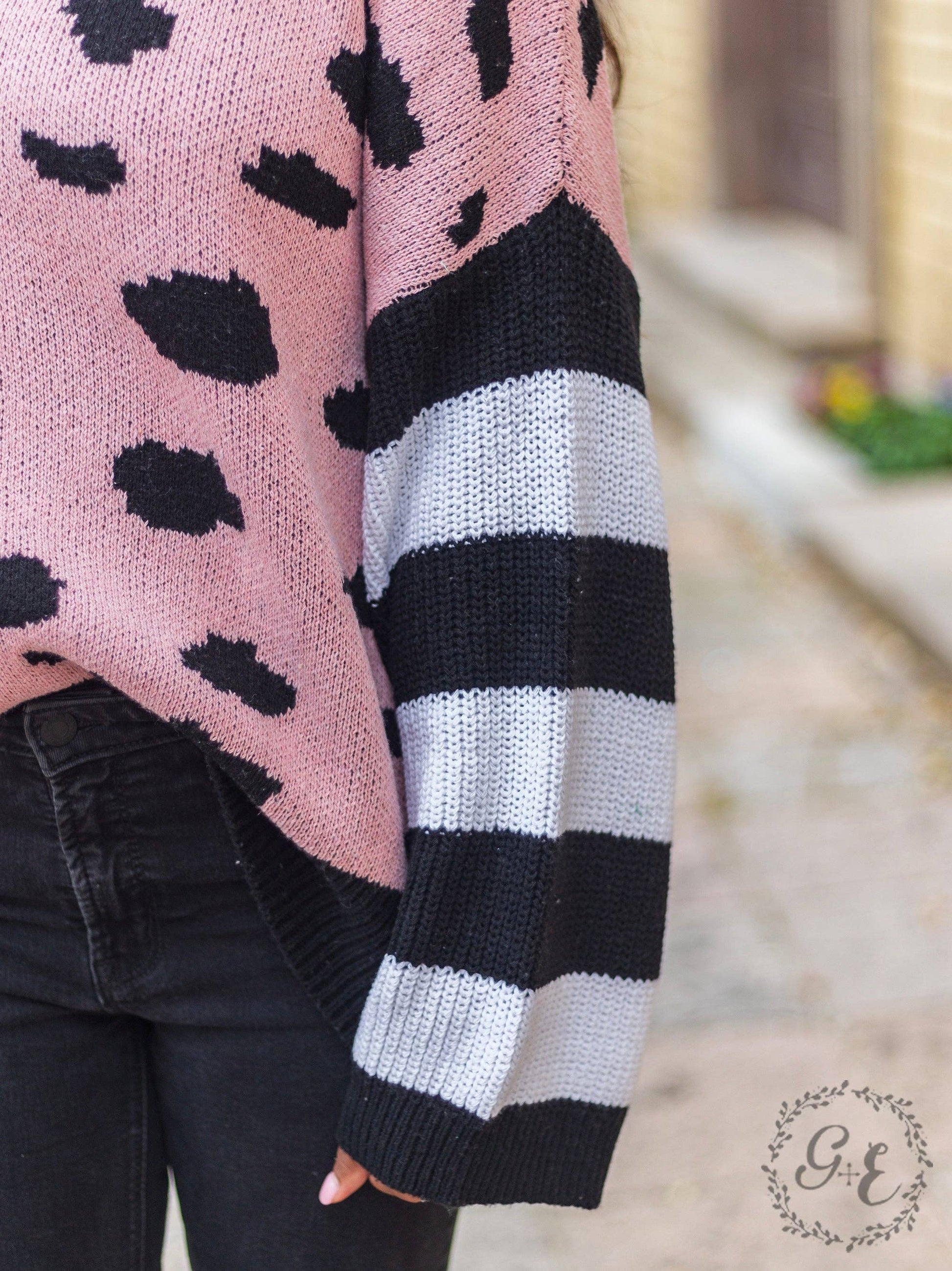 Add a touch of warmth and style to your fall wardrobe with our Fall-ing in Warmth Long Sleeve Pullover Sweater! Featuring a beautiful pink animal print and trendy stripe sleeve design, this sweater is perfect for cooler weather. Stay cozy and stylish all season long!