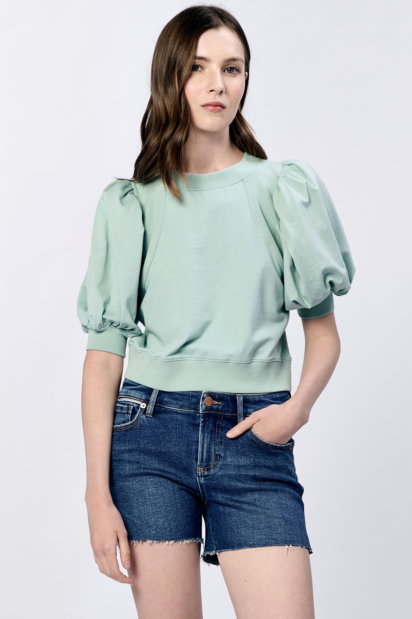 Say hello to the Melina Crew Neck top! This playful piece features short puff sleeves, adding a touch of whimsy to your look. With its lightweight fabric and comfortable fit, you'll be effortlessly stylish and comfortable all day long. Say goodbye to boring basics and hello to a fun and quirky addition to your wardrobe!