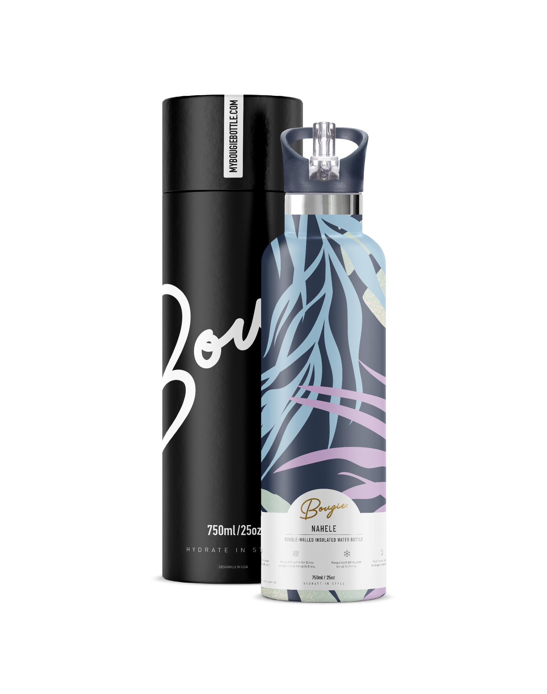 Introducing the Nahele Bougie Bottle, a captivating embodiment of the lush mysteries found deep within a tropical forest's embrace. INCLUDES - Leak-proof, screw-on, easy one-hand Flip ’n’ Sip Lid - 2 (two) bottle-length, reusable BPA-free Straws - Durable, strong yet soft bristled Pipe Cleaner - FEATURES - 25oz. food-grade, 18/8 stainless steel bottle - Slim shaped to fit most cup holders for safer driving - Wide mouth makes it easy to fill and clean - Scratch-resistant 360° covered graphic wrap - Easy to carry handle - Double-walled insulated to keep drinks cold for up to 24hrs, hot drinks warm for 12hrs, and piping hot for up to 6hrs - Free from condensation build-up on bottle exterior - Eco-friendly & BPA-free and no aftertaste - FDA approved - FUN FACT: 25oz. volume holds an entire bottle of wine. No gift tube.