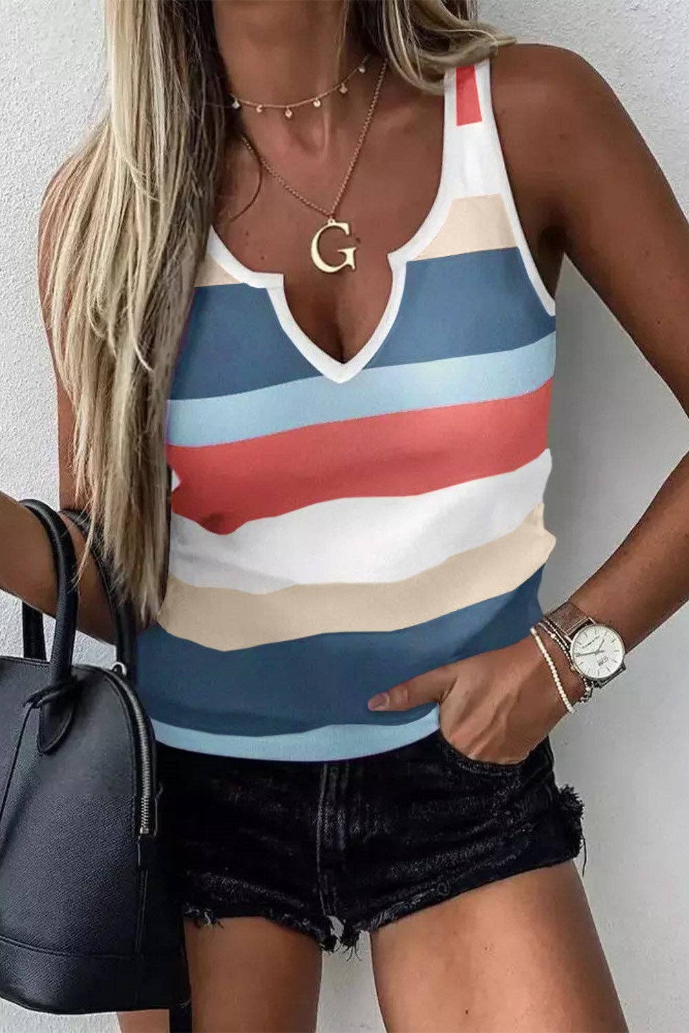 Notched Neck Striped Tank Top