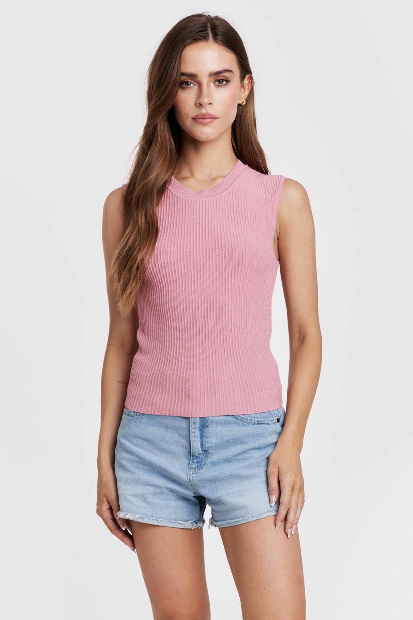 Add a pop of color to your wardrobe with our Stirling Sleeveless top! Featuring a ribbed design and a classic crew neckline, this top is perfect for any occasion. The dewy iris color adds a touch of playfulness to your look.